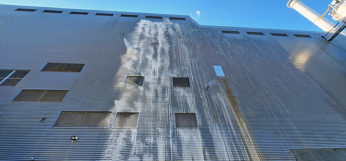 We have finished the external cleaning of tanks and facade cleaning of a 45 meter high wall for BIR Waste Energy. The job was done with the KTV Working Drone using the Selfcleaner method.