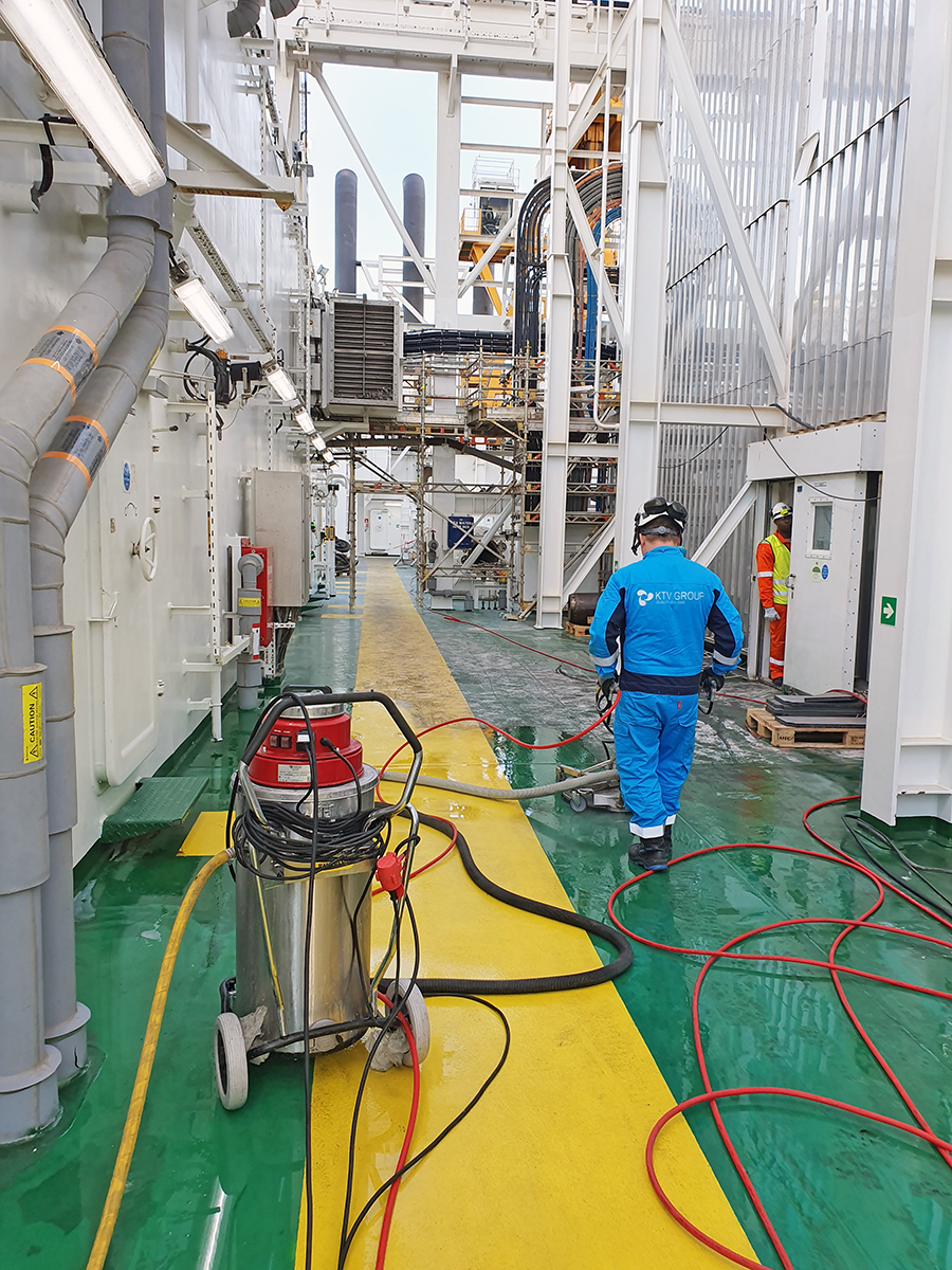 KTV Group delivers services for rigs both onshore and offshore, as well as during rig classifications. We perform tank cleaning, pipe flushing, ventilation cleaning and general cleaning, and we supply all required ATEX equipment and ensure safe waste handling.