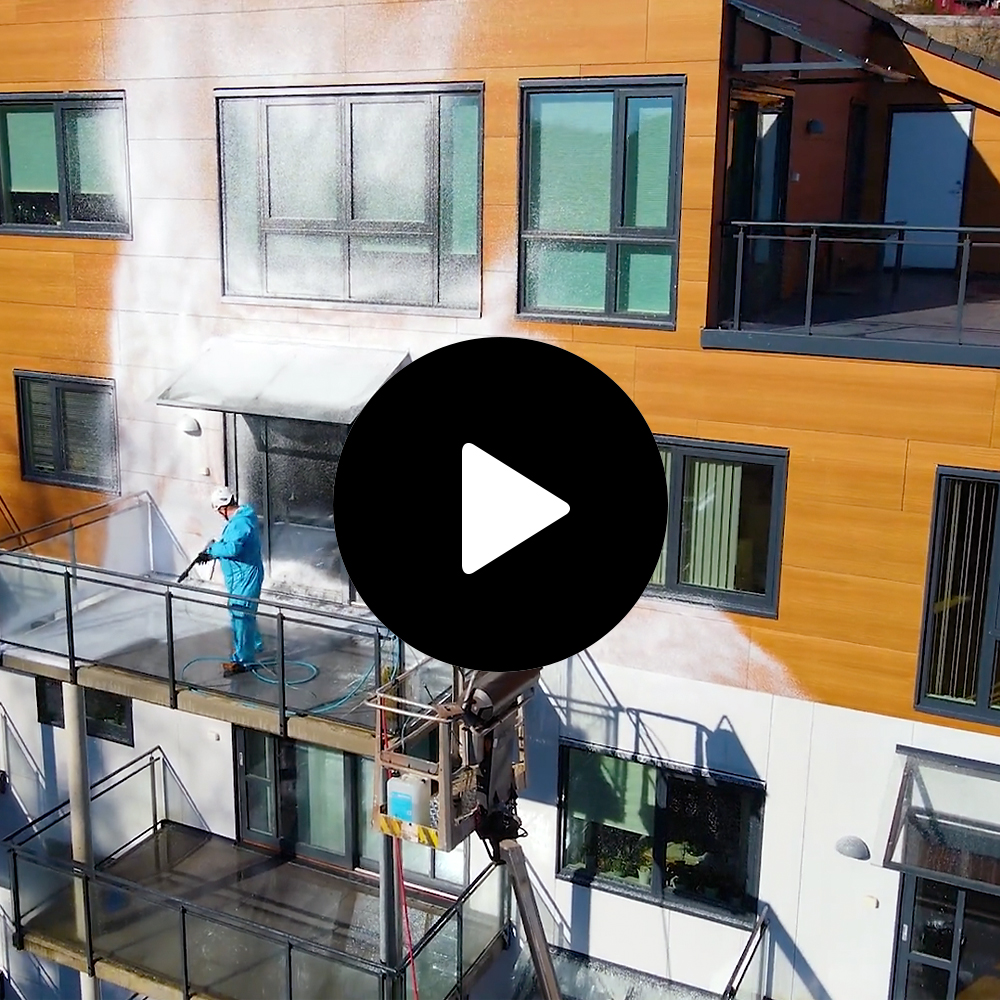 Denne uken har KTV Group utført fasadevask på over 25 000 m2 fasade på en rekke borettslag og sameier. KTV Group står bak utviklingen av SelfCleaner-metoden, der den store fordelen