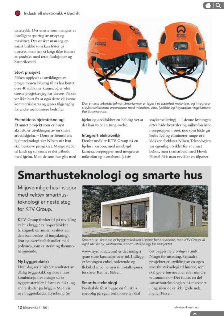 Stor omtale i Elektronikknett.no, om FoU og utviklingsprosjekter i KTV Group. Bla nedover for å se sidene i artikkelen. Du kan også lese artikkelen hos Elektronikknett på nett her. (åpner i nytt vindu)